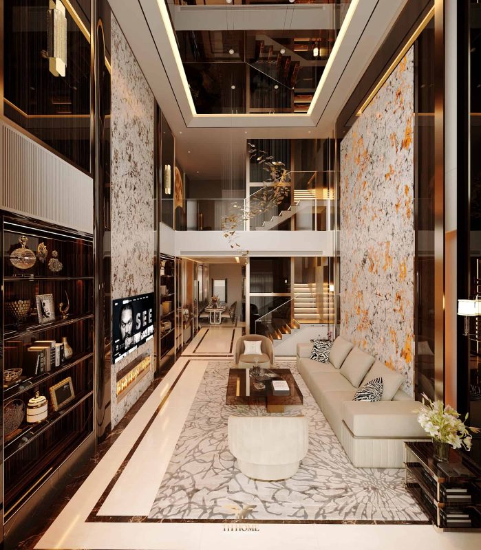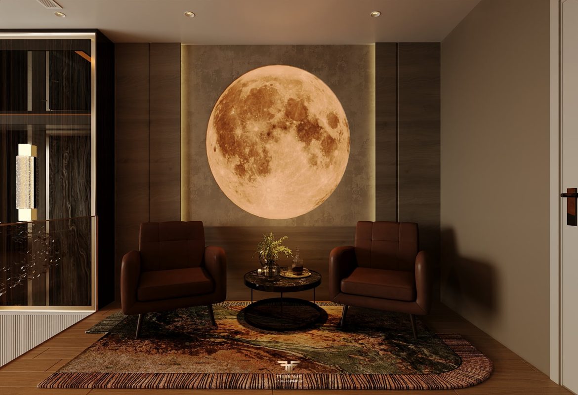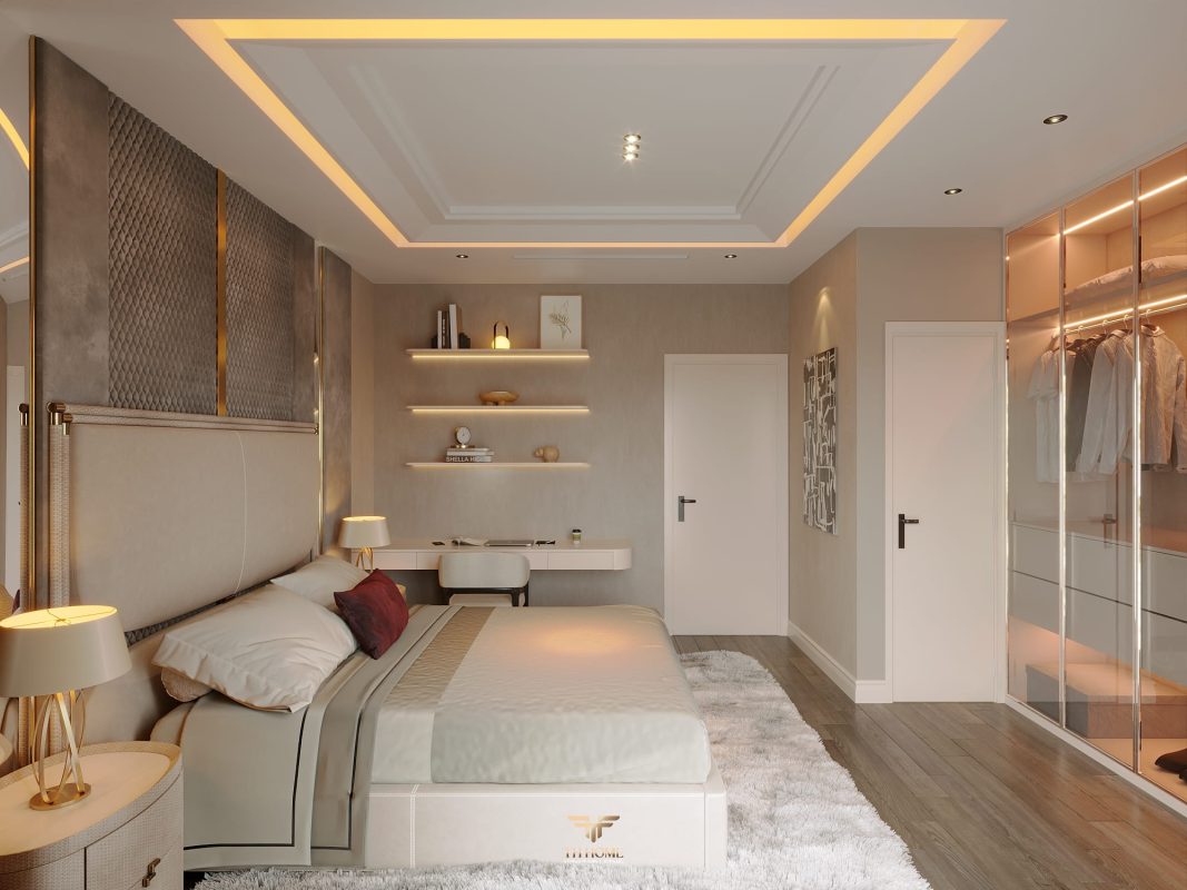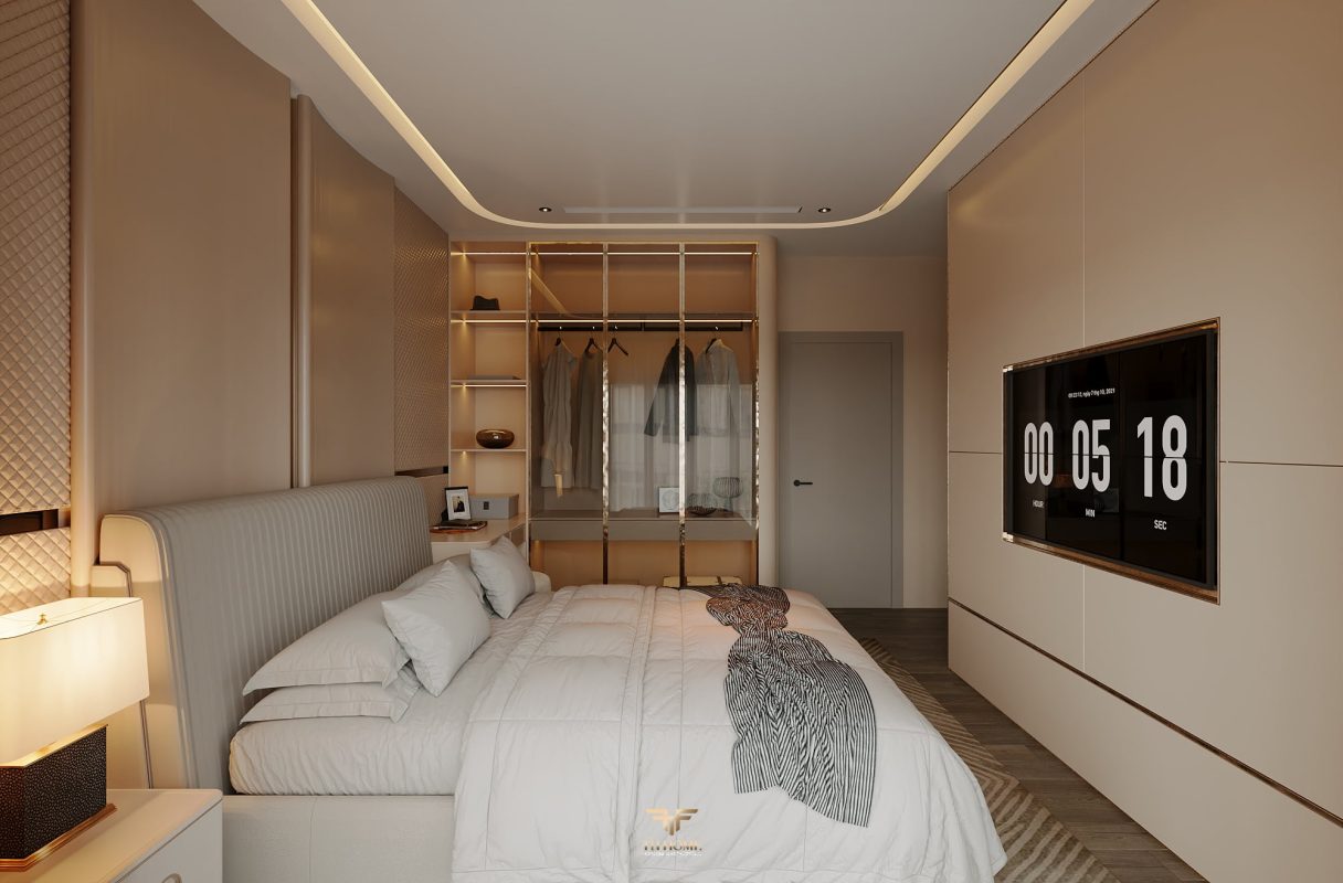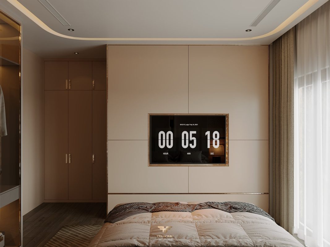 Không gian được thiết kế cá nhân hóa, phòng khách thông tầng được nâng tầm với vách đá xuyên sáng cùng đèn chùm pha lê, như một điểm nhấn nghệ thuật đầy kiêu hãnh. Khu bếp hiện đại, sang trọng giữ lửa yêu thương. Phòng ngủ ấm cúng, chỉn chu – nơi gia chủ tìm lại sự an yên sau mỗi ngày dài.