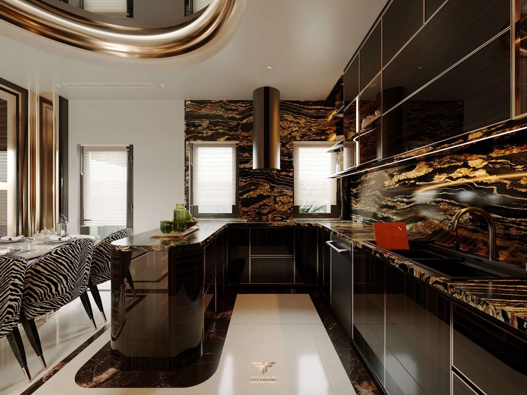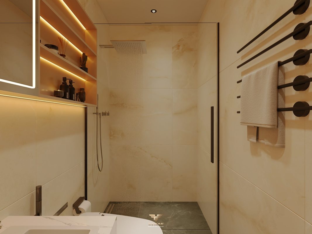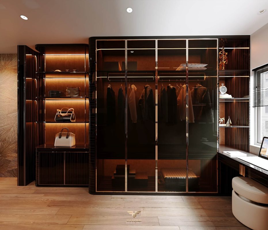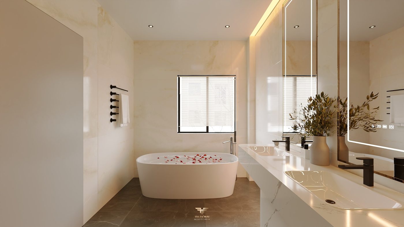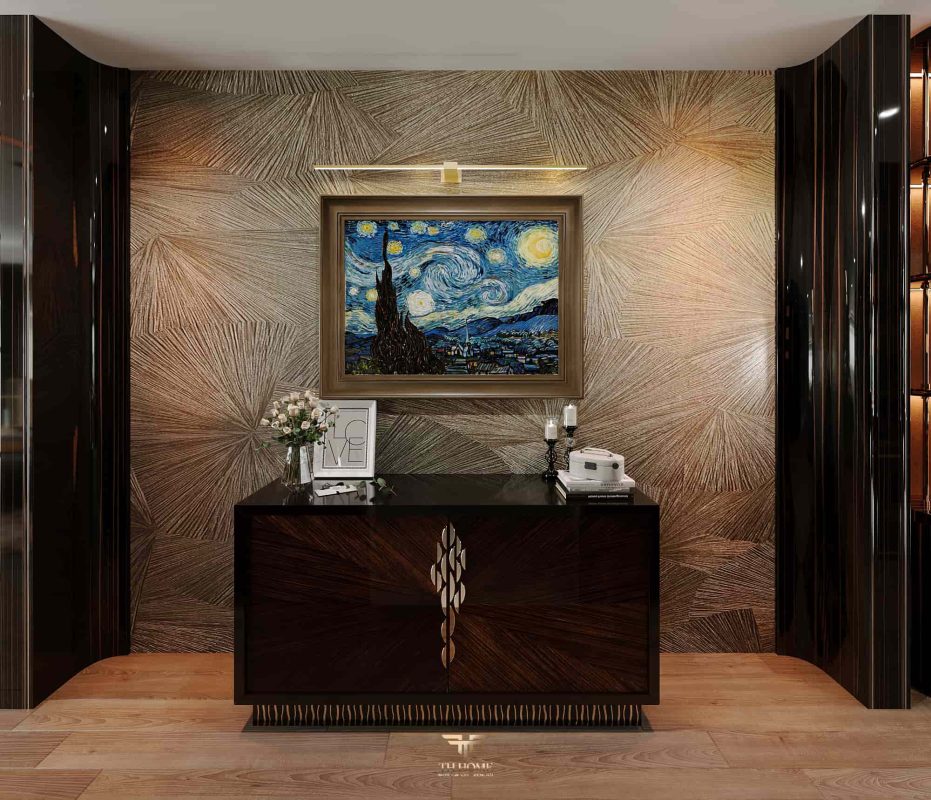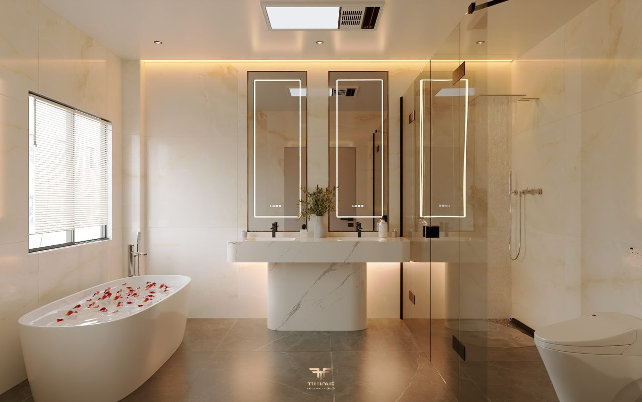 Không gian được thiết kế cá nhân hóa, phòng khách thông tầng được nâng tầm với vách đá xuyên sáng cùng đèn chùm pha lê, như một điểm nhấn nghệ thuật đầy kiêu hãnh. Khu bếp hiện đại, sang trọng giữ lửa yêu thương. Phòng ngủ ấm cúng, chỉn chu – nơi gia chủ tìm lại sự an yên sau mỗi ngày dài.