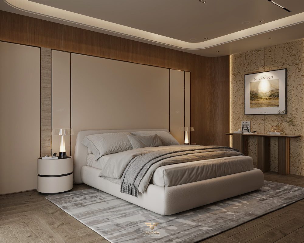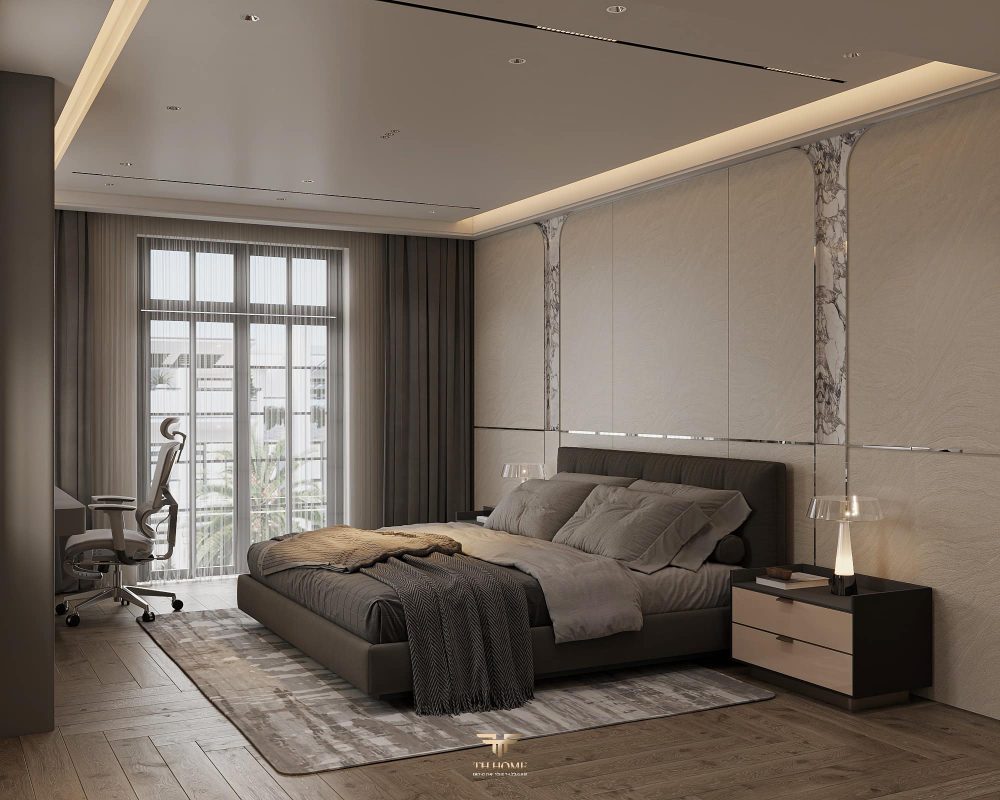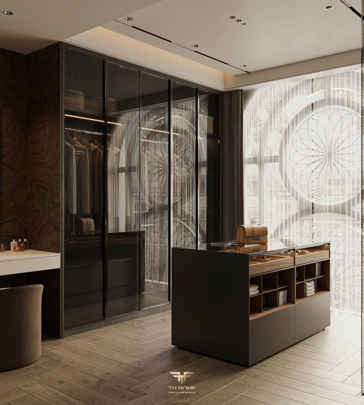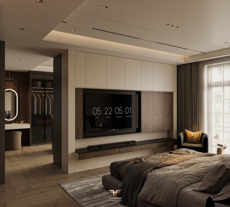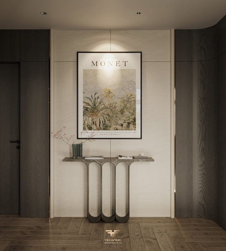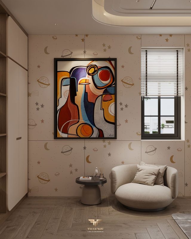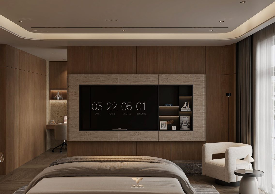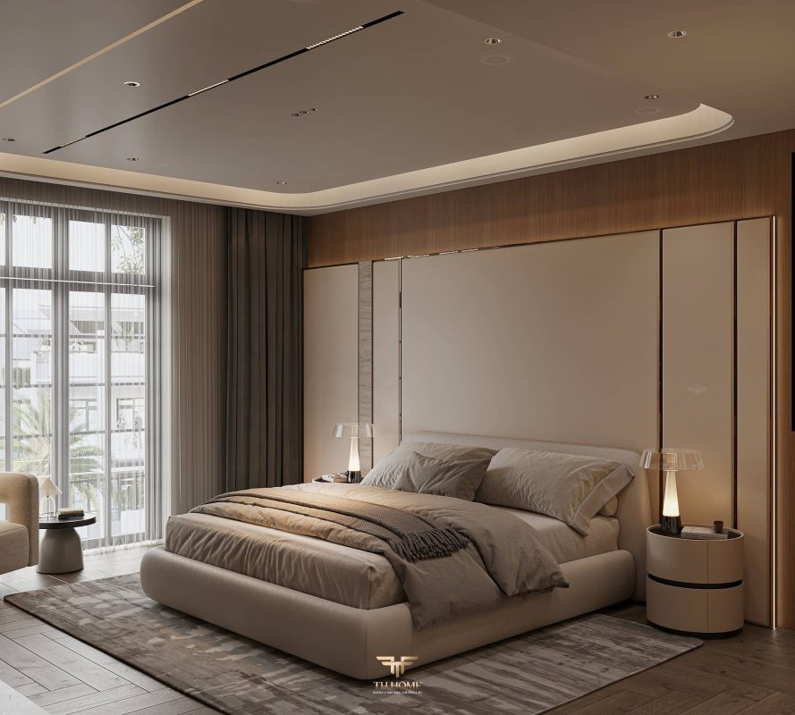 Không gian ấn tượng với tone màu trầm chủ đạo. Từng chi tiết từ trần thạch cao bo cong, hệ thống chiếu sáng cho đến cách bố trí nội thất đều được cân nhắc kỹ lưỡng để tạo nên tổng thể hài hòa: ấm áp, thư thái mà vẫn sang trọng và nghệ thuật.