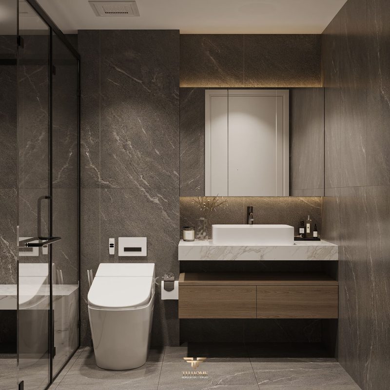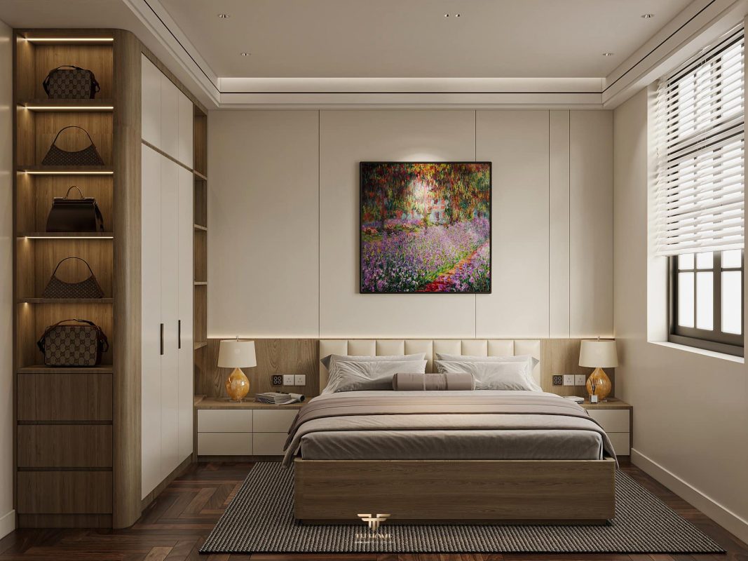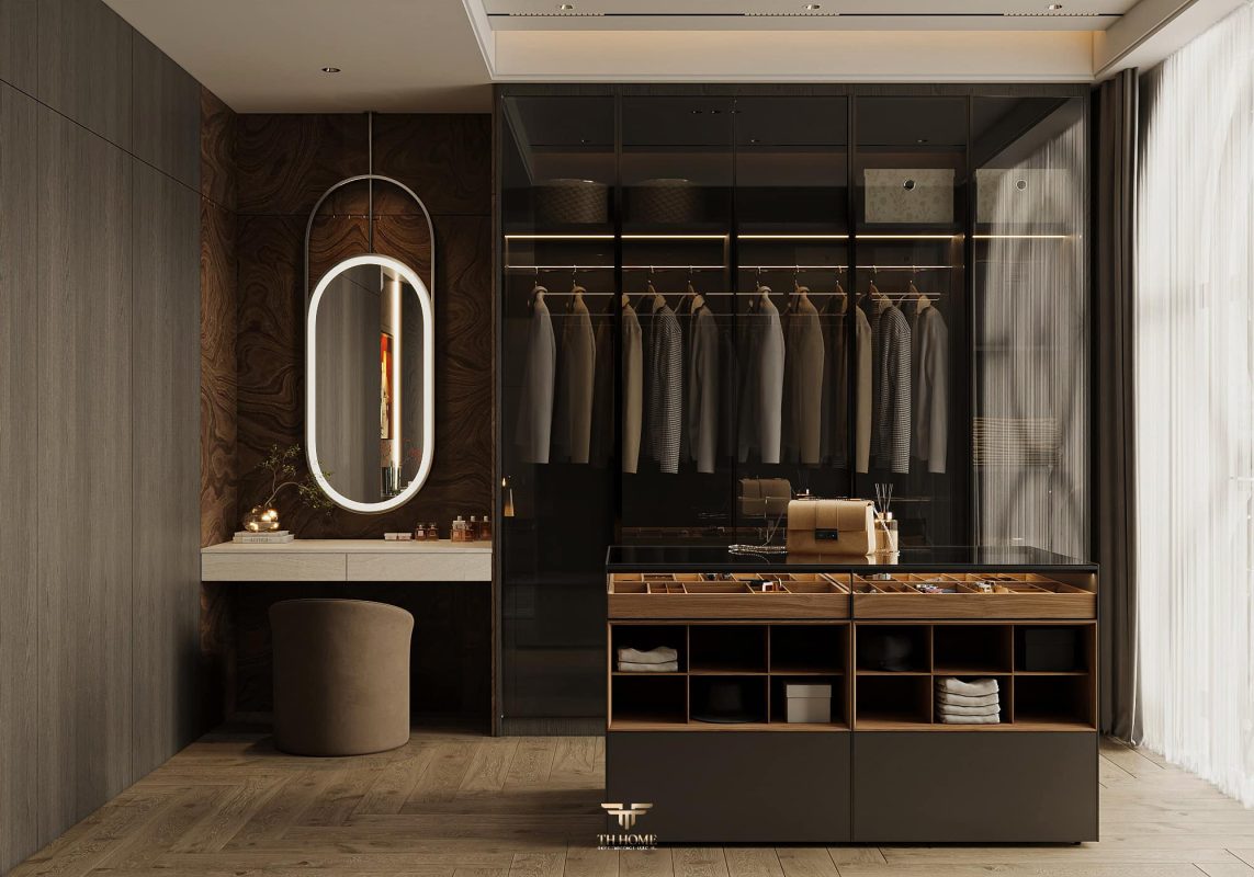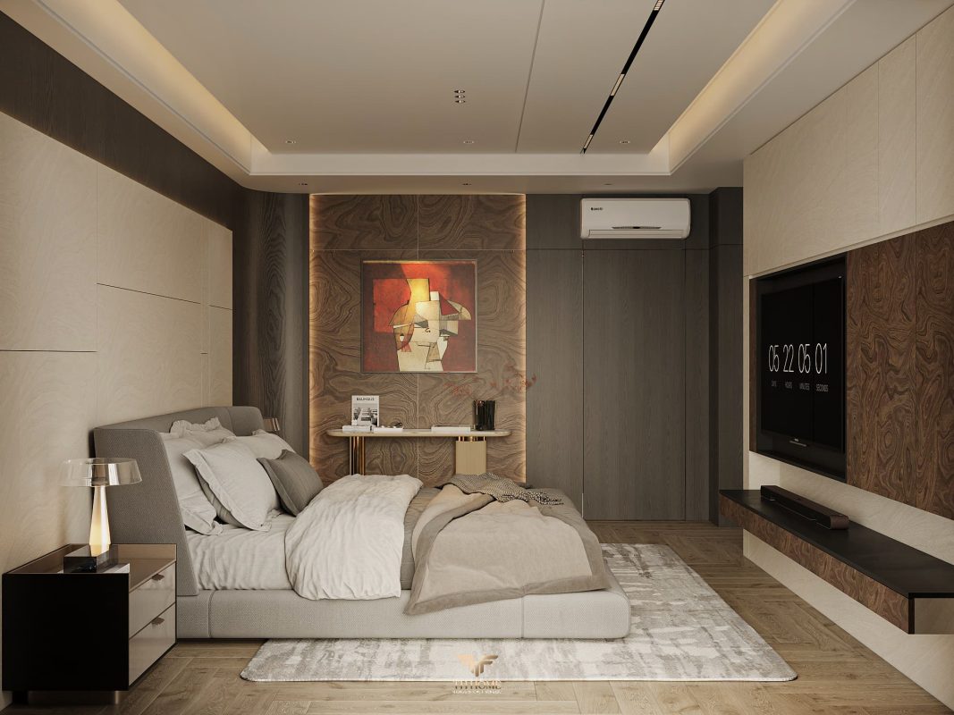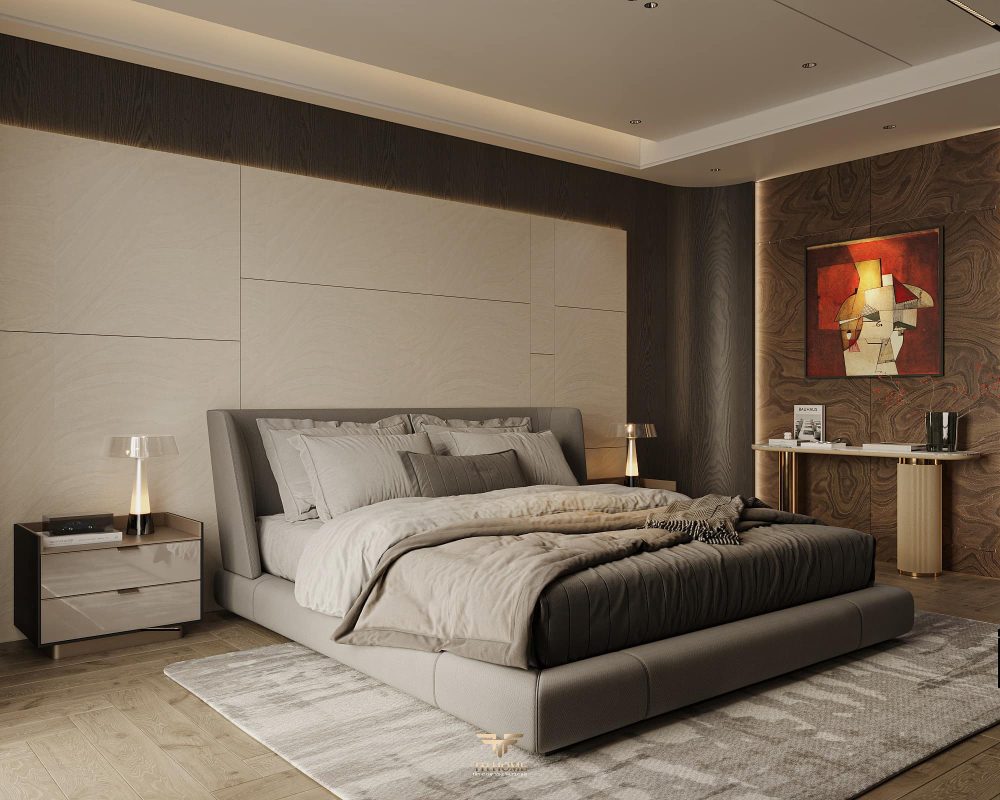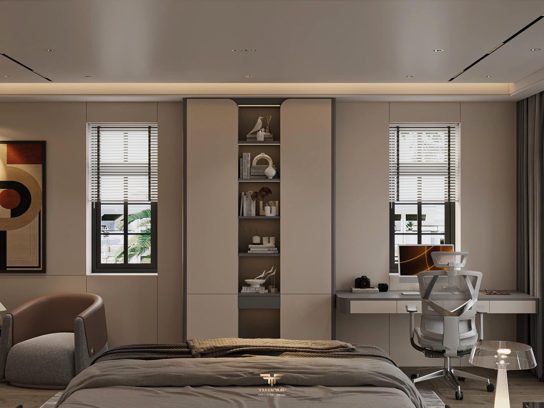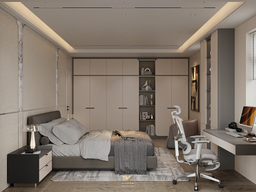 Không gian ấn tượng với tone màu trầm chủ đạo. Từng chi tiết từ trần thạch cao bo cong, hệ thống chiếu sáng cho đến cách bố trí nội thất đều được cân nhắc kỹ lưỡng để tạo nên tổng thể hài hòa: ấm áp, thư thái mà vẫn sang trọng và nghệ thuật.