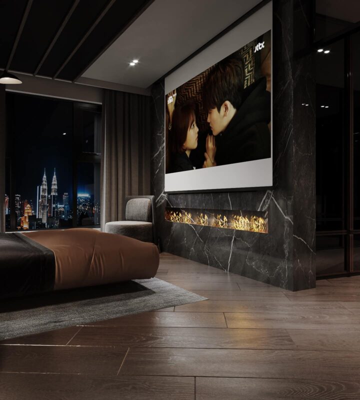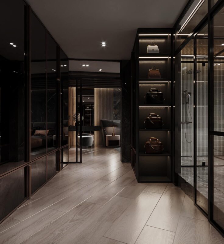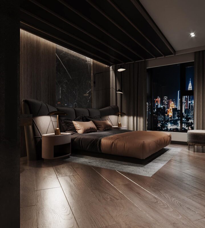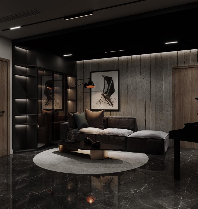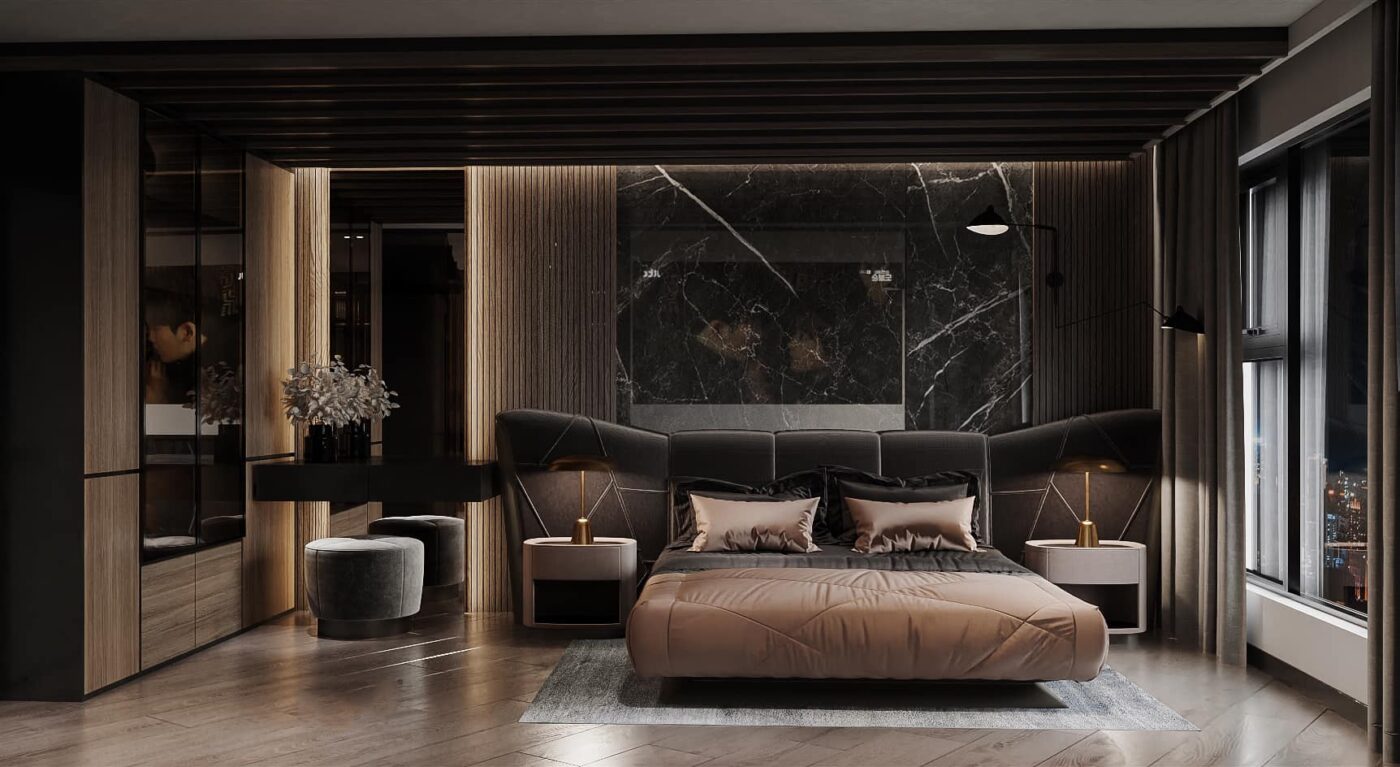 Thiết kế theo phong cách Hiện Đại Luxury, căn penthouse tọa lạc ngay tại trung thâm của Hà Nội. Theo đúng tiêu chí đẹp đẳng cấp, ứng dụng nội thất sang chảnh cùng những tiện ích thông minh khác nhằm giải phóng sức lao động của người sử dụng. Lấy gam màu đen làm chủ đạo kết hợp điểm nhấn là các vách ốp gỗ, vách ốp đá và đèn LED mang lại cảm giác lung linh, tinh tế đầy sự lôi cuốn.
