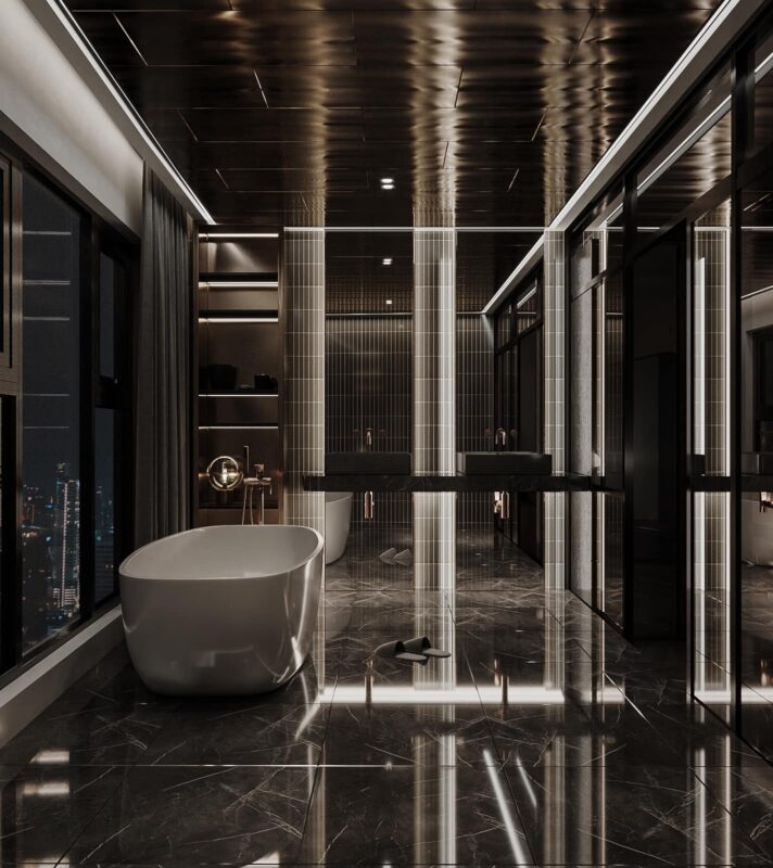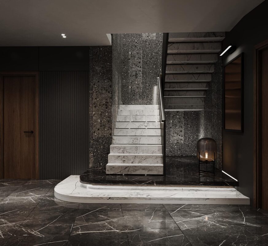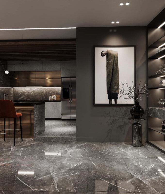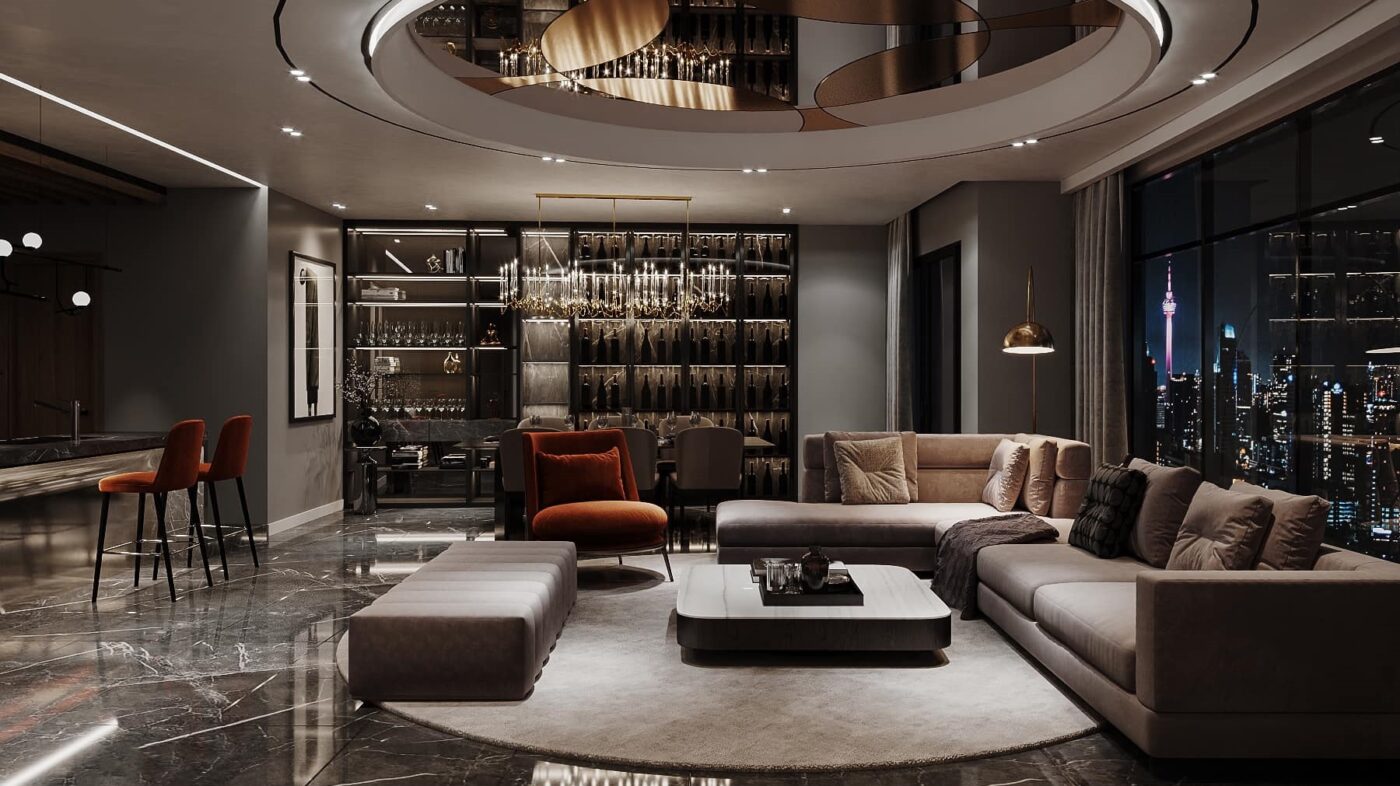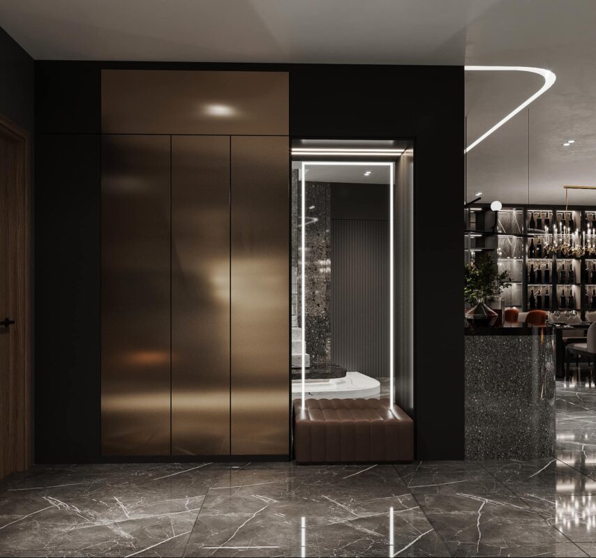 Thiết kế theo phong cách Hiện Đại Luxury, căn penthouse tọa lạc ngay tại trung thâm của Hà Nội. Theo đúng tiêu chí đẹp đẳng cấp, ứng dụng nội thất sang chảnh cùng những tiện ích thông minh khác nhằm giải phóng sức lao động của người sử dụng. Lấy gam màu đen làm chủ đạo kết hợp điểm nhấn là các vách ốp gỗ, vách ốp đá và đèn LED mang lại cảm giác lung linh, tinh tế đầy sự lôi cuốn.